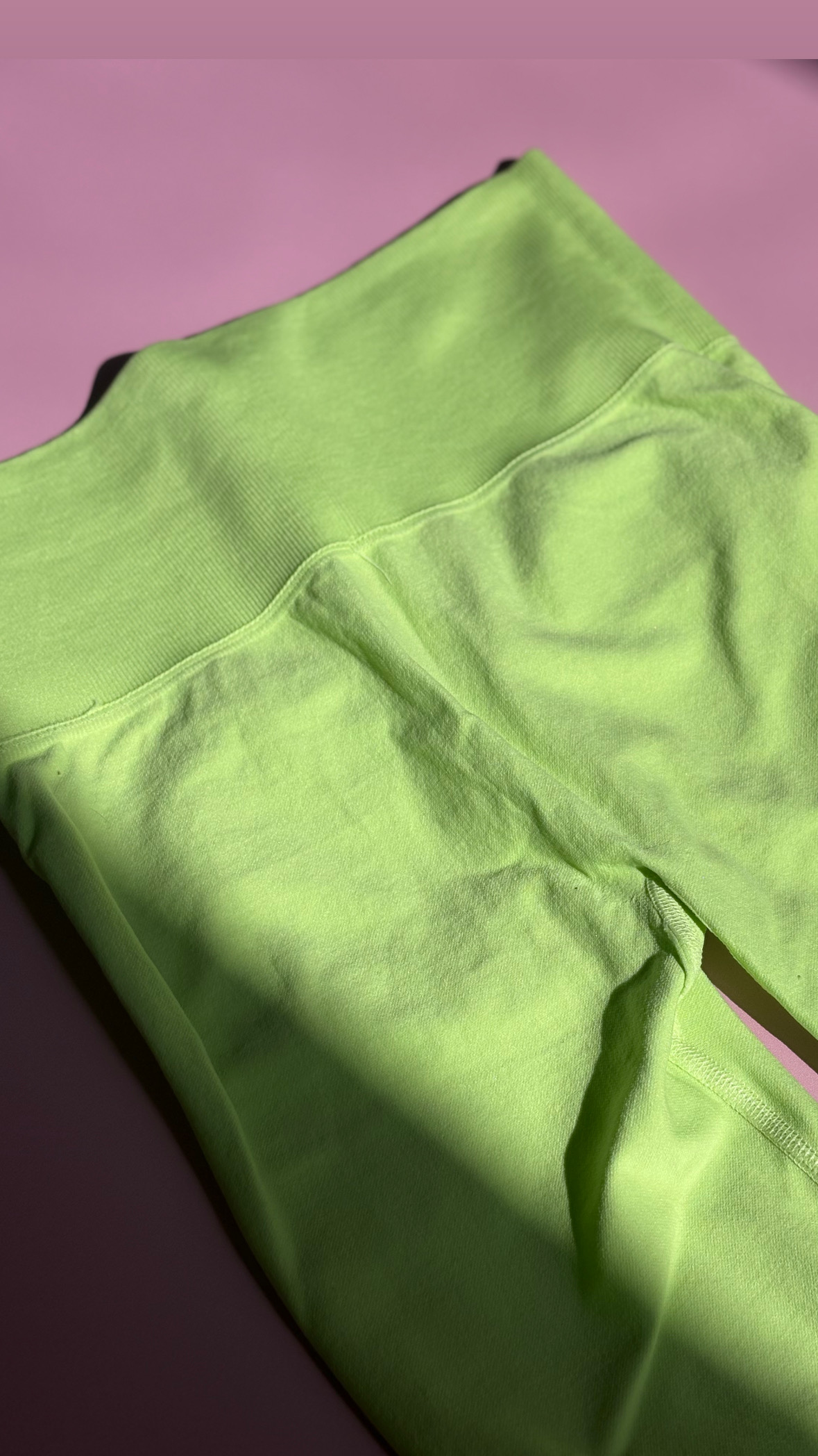 لگ ورزشی سیملس موجودی فقط یک عدد تکرنگ سبز فسفری بالا گنی خوش فرم نرم محکم و فیت بدن سایز xs سایز ۳۲،۳۴ مناسب سایزای کوچیک
