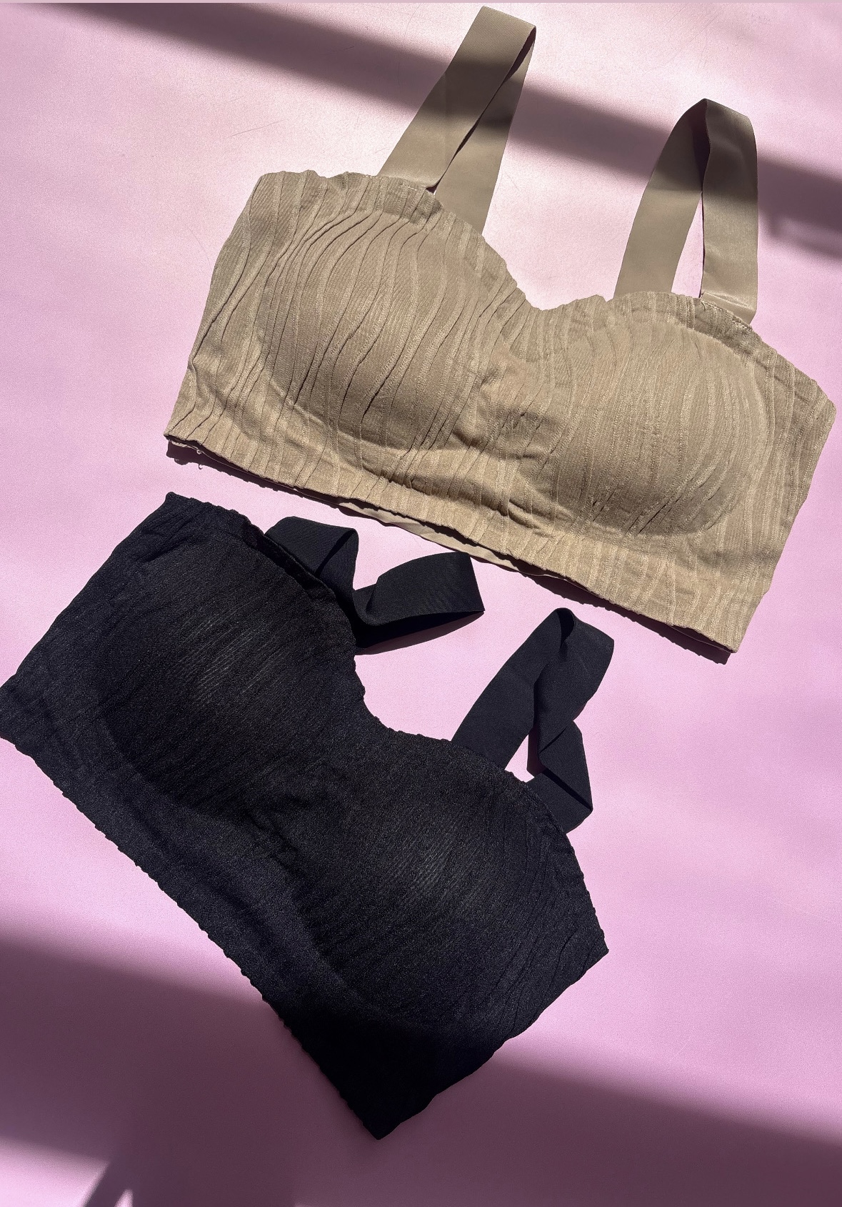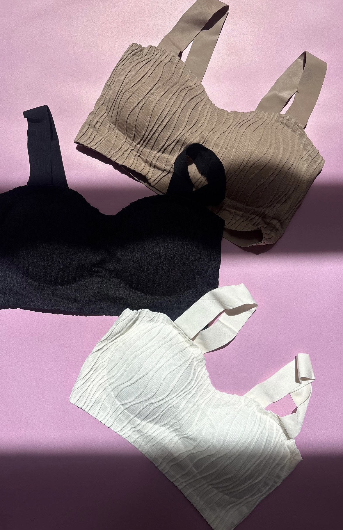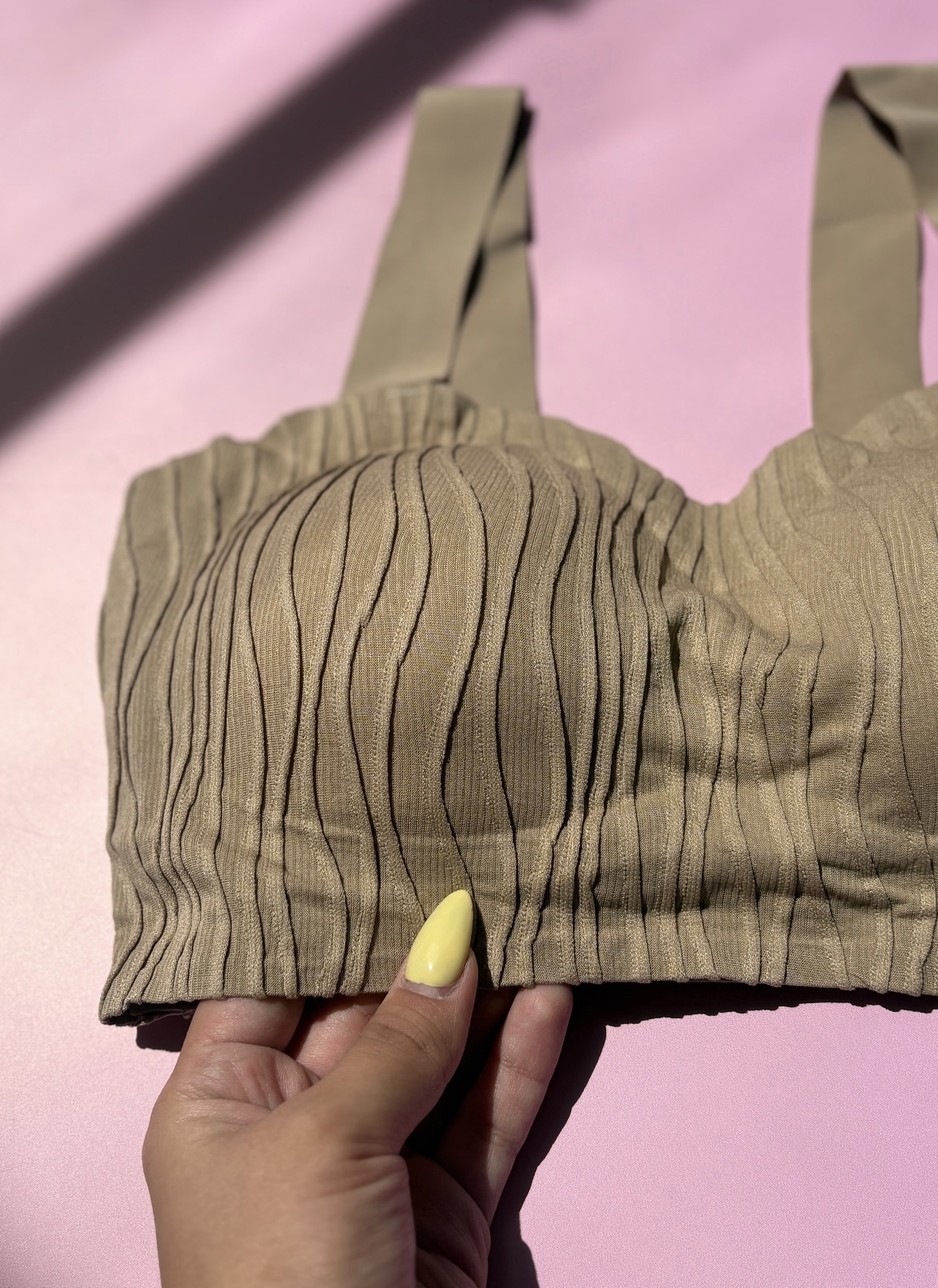 نیمتنه موج🌊🤎 وارداتی بند لیزری جنس نرم خطوط موج دار روی کار پد دار رنگبندی تصویر سایز بندی ۷۰،۷۵،۸۰،۸۵ کاپ a,b راحت،نرم و خنک