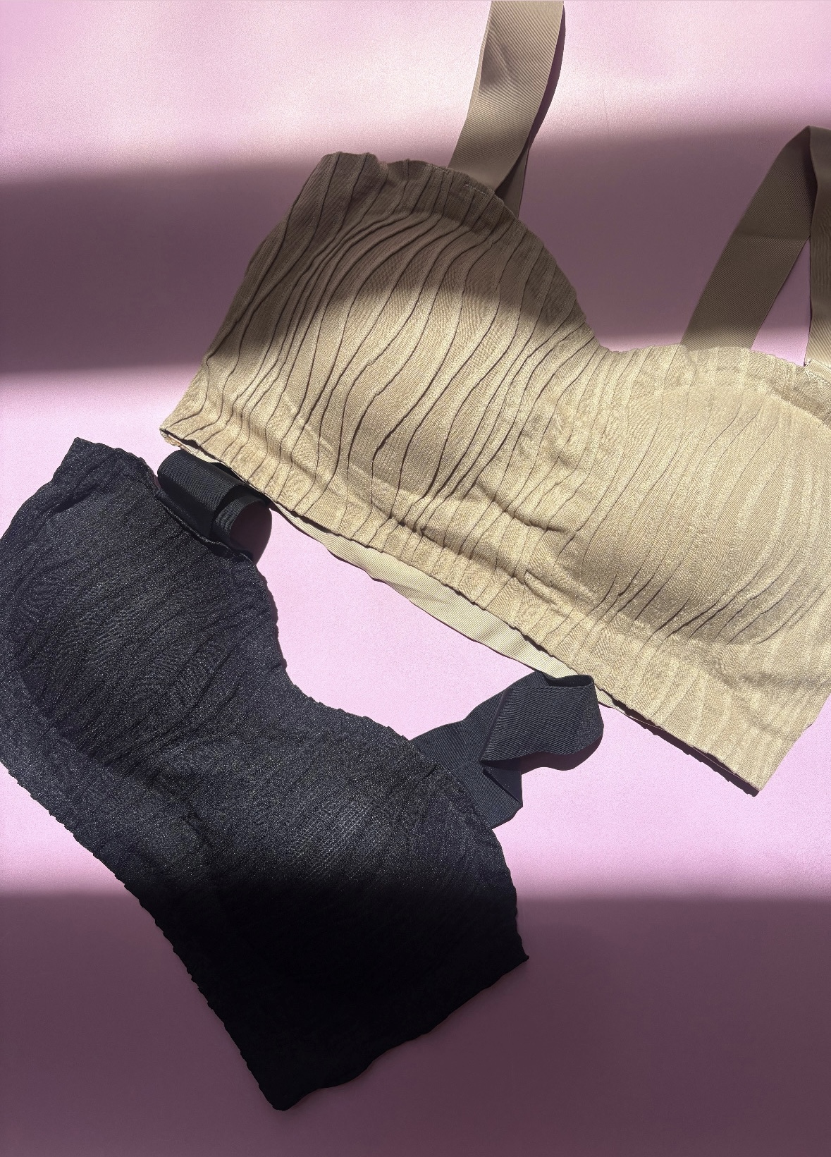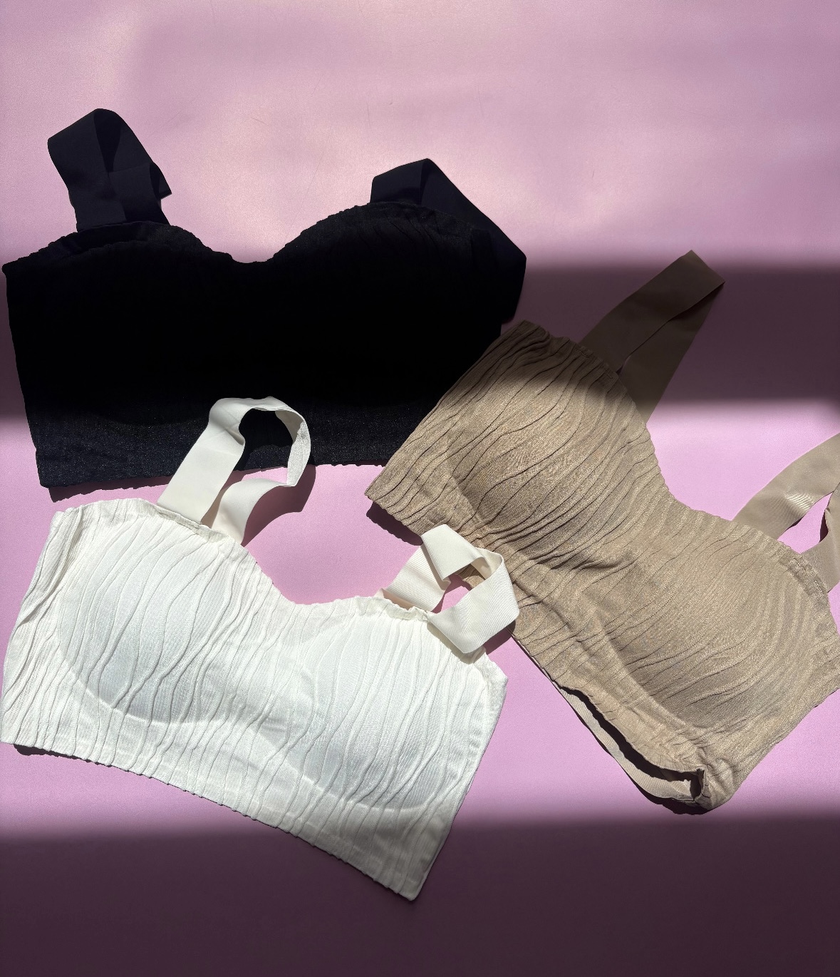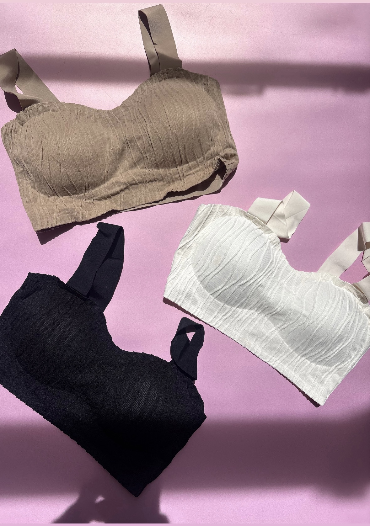 نیمتنه موج🌊🤎 وارداتی بند لیزری جنس نرم خطوط موج دار روی کار پد دار رنگبندی تصویر سایز بندی ۷۰،۷۵،۸۰،۸۵ کاپ a,b راحت،نرم و خنک